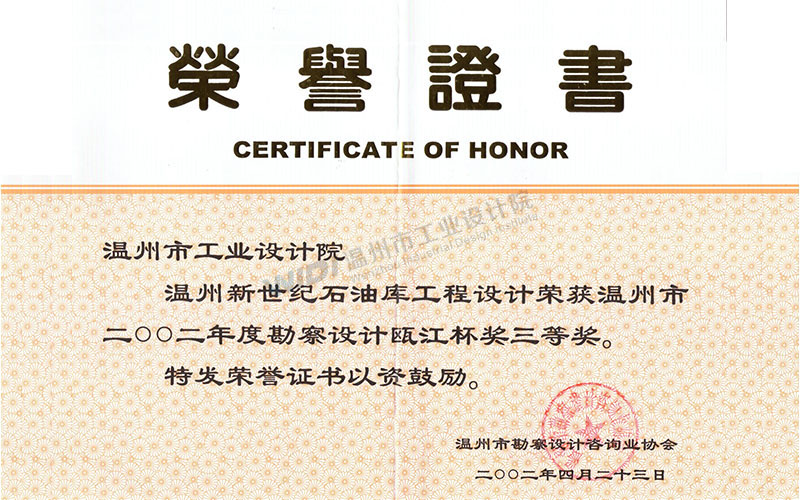 溫州新世紀(jì)石油庫工程設(shè)計(jì) 甌江杯三等獎(jiǎng)