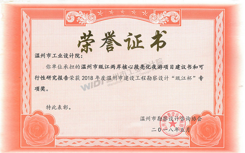 溫州市甌海大道整治提升工程項(xiàng)目建議書和可行性研究報(bào)告 甌江杯專項(xiàng)獎(jiǎng)